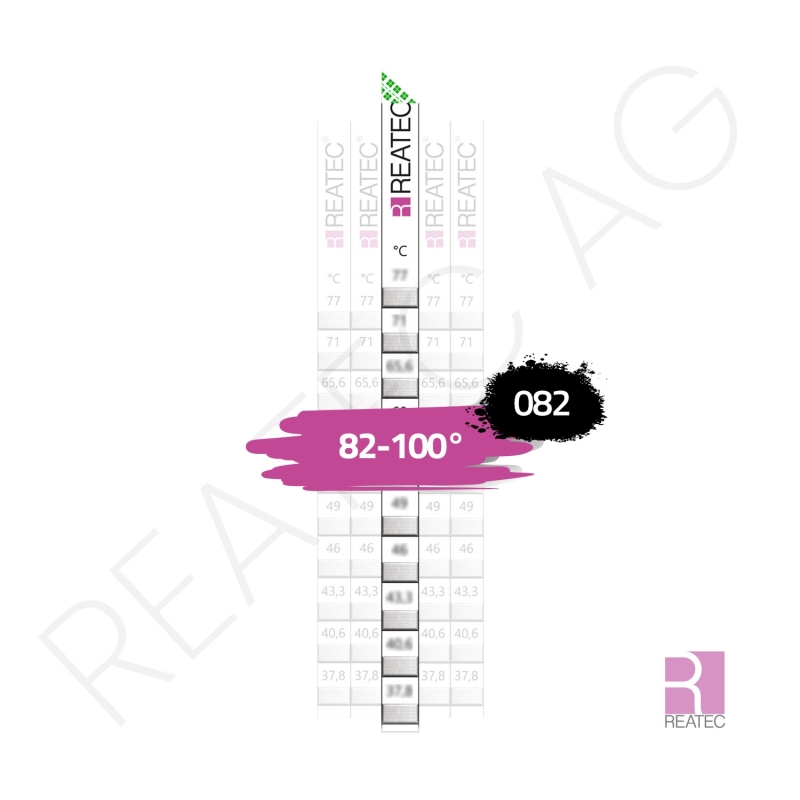 The 082.SSX.10 variant covers the following temperature ranges: 180°F, 183°F, 187°F, 190°F, 194°F, 197°F, 201°F, 204°F, 208°F, 212°F. This makes the strip perfectly suited for industrial applications where production safety and accurate temperature documentation are critical.